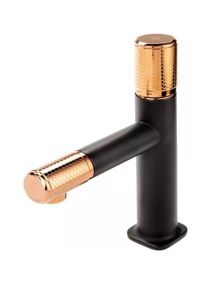 Bateria pentru lavoar ARDESIA, cu finisajul negru mat, se contopește armonios cu aspectul subtil de fagure, iar manerul în nuanța rose gold adaugă un strop de lux și rafinament în baia ta. Cu un design ingenios și practic, manerul de tip joystick oferă o manevrare ușoară și o setare precisă a debitului de apă. Oferind o deplină libertate în amenajarea băii tale, această baterie unică se integrează perfect lângă chiuveta modernă din baie, cu accente de inspirație romantică. Transformă-ți baia într-un sanctuar al frumuseții și confortului, unde fiecare detaliu este gândit să îți ofere o experiență de neuitat.- robinet vertical pentru chiuvetă- înălțimea robinetului: 210 mm- raza de acțiune a gurii de scurgere: 161 mm- înălțimea ieșirii apei: 100 mm- lungimea furtunurilor de conectare: 350 mm- diametrul racordurilor: 3/8″”- volumul de livrare: mixer, dop cu clic, set de conexiuni, furtunuri de conectare- regulator de jet Easy Clean (îndepărtarea ușoară a depunerilor de calcar)- regulator ceramic- funcție ecologică – consum redus de apă și energie- cu fișă cu clic- material: alamă- culoare: rose gold/negru mat