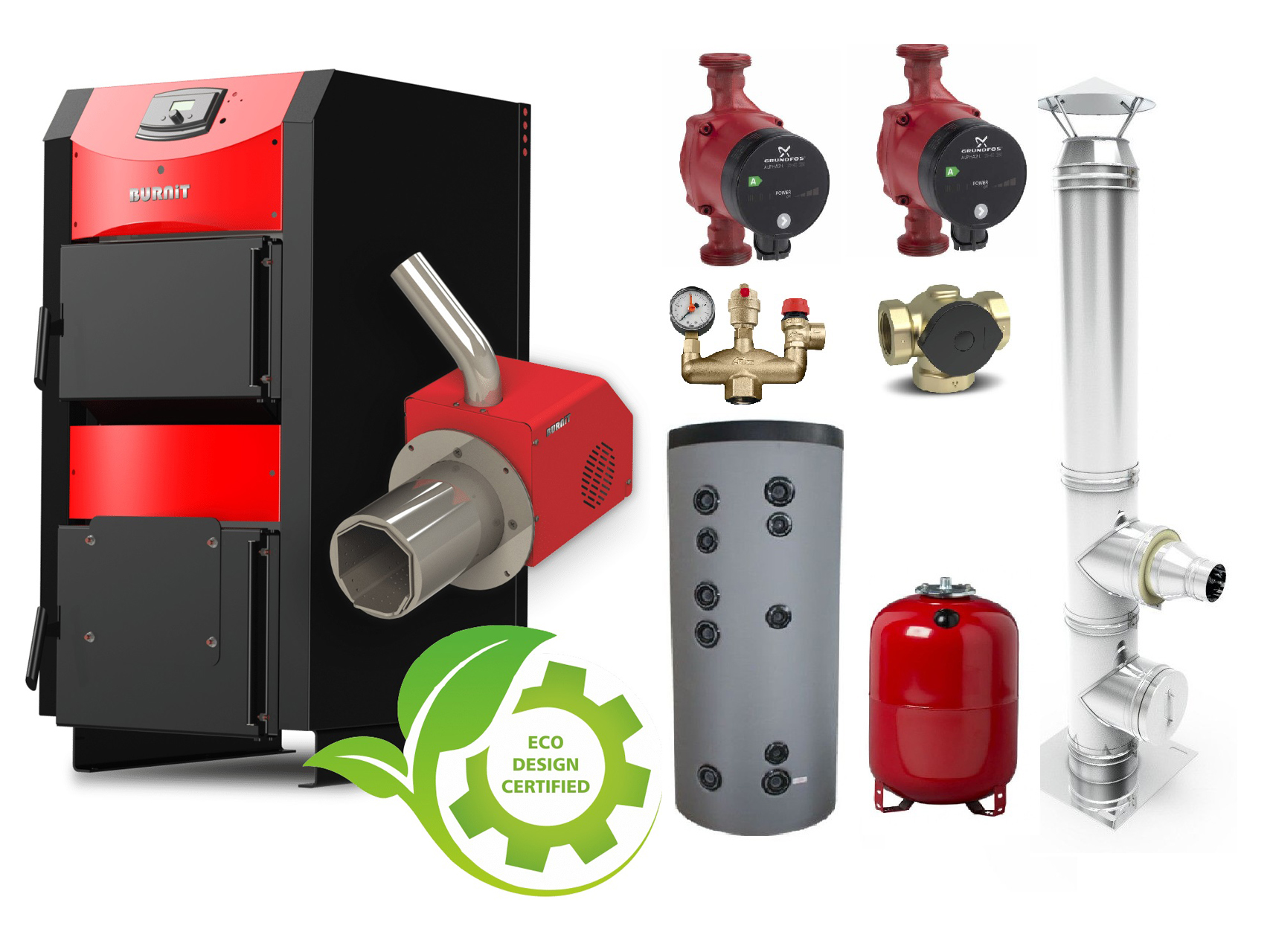 Pachet Centrala mixta combustibil solid si peleti Burnit NWB PRIME 30 kW si Arzator pe peleti Pell Eco 35 kW, cos de fum Fornello inox 6 metri D 200 mm, boiler SON 150 litri 2 serpentine, 2 pompe Grundfos , Vas expansiune 35 litri, termoventil, pana la 200 mp1. Centrala mixta combustibil solid si peleti Burnit NWB PRIME 30 kW si Arzator pe peleti Pell Eco 35 kW;2. Cos de fum modular complet inox dublu perete diametru 200 mm, inaltime 6 metri3. Boiler solar cu 2 serpentine SUNSYSTEM SON 150 litri4. Pompa de circulatie Grundfos Alpha 2 l 25-605. Pompa pentru boiler Grundfos Alpha 2 L 25-406. Vas de expasniune cu suport 35 litri7. Grup de sigurnata (manometru, supapa de expasniune, aerisitor automat)8. VANA STS – vana de descarcare termica pentru serpentina de racire a cazanuluiSET DE INCALZIRE CENTRALA NWB PRIME 30 kW CU ARZATOR PE PELETI PELL ECO 35 KWSet gata pentru folosire. Pentru arderea peletilor din lemn.Setul contine:CAZANUL PE COMBUSTIBIL SOLID BURNIT NWB PRIME 30 kWCazanul pe combustibil solid, 30 kW, cu ventilator, NWB PRIME 30, BURNiT este destinat pentru încălzirea încăperilor mari și medii, pentru sisteme de încălzire centrală în clădiri rezidențiale, comerciale sau industriale, unde necesarul de căldură nu depășește 30 kW. Este un cazan din tablă de oțel echipat cu o unitate de control, controler TECH inteligent, plus dotat cu un ventilator pentru creșterea performanței și pentru circulația forțată a aerului. Cazanul NWB PRIME 30, BURNiT a fost proiectat și format pentru a se adapta la arderea lemnului de foc, brichetelor din lemn și cărbunelui. Pe lângă acestea – ținând cont de cele mai moderne soluții, dacă adăugați un arzător de peleți ca accesoriu suplimentar, îl puteți folosi ca un cazan pe peleți..Testat si aprobat conform Norma Europeana EN-303-5.ARZATORUL PE PELETI PELLArzatoarele pe peleti BURNiT Pell sunt destinate arderii peletilor de lemn cu un diametru de 6-8 mm. Contribuie la un proces de ardere ecologic si de mare eficienta. Arzatoarele sunt confectionate din otel inoxidabil de calitate, care rezista la temperaturi de pana la 1150°С. Controlul cu microprocesor incorporate, sistemul de auto-curatare si snecul interior, garanteaza o exploatare usoara si ardere optima a combustibilului. Arzatorul pe peleti Pell este montat la cazan.AVANTAJE:Incalzirea camerelor medii si mariМontare si utilizare usoaraGratar metalic detasabilRegulator termostaticPosibilitatea instalarii unui arzator cu gaz, ulei sau peletiAVANTAJE: Comanda electronica controleaza arderea prin gestionarea functionarii ventilatorului; posibilitate de gestionare a doua pompe – pentru incalzire centrala si pentru apa calda menajera (ACM). Suflanta pentru alimentare cu aer a camerei de ardere; optimizeaza procesul de ardere si consumul de combustibil. Manta de apa inconjoara intreaga camera de ardere pentru a maximiza utilizarea caldurii reziduale. Camera de ardere are o suprafata mare de schimb de caldura si o rezistenta a camerei mica. Usa de incarcare de dimensiuni mari ceea ce usureaza introducerea lemnelor chiar si de mari dimensiuni (dimensiunea lemnelor pana la 50 cm). Suprafata cu nervuri a camerei de ardere si cele trei cai de eliminare a fumului, asigura un schimb de caldura cu randament ridicat. Gratarul metal detasabil protejeaza grila de conducte de flacara. Flansa pe usa inferioara pentru montarea unui arzator pe peleti, gaz sau motorina (optional).DISPOZITIVE DE SIGURANTA Termostat siguranta STB – opreste ventilatorul si opreste procesul de ardere. Supapa de siguranta la 3 bar. Serpentina de racire in caz de supraincalzire, prin aceasta trece apa rece, care reduce temperatura cazanului. Conectarea cazanului la reteaua de alimentare cu apa trebuie sa fie efectuata printr-un robinet termostatic (nu este inclus in set). Supapa de siguranta montata pe ventilator.ELEMENTELE CAZANULUI NWB PRIME 30 kW – PELL :1. Cazan NWB PRIME 30 kW2. Arzator pentru peleti Pell3. Buncar pentru peleti FH 500 /NEINCLUSE IN KIT – SE ACHIZITIONEAZA SEPARAT/4. Turbulatori5. Usa superioara pentru protectie6. Detasarea capacului flansei pe usa inferioaraa cazanului7. Kit de montaj – pentru conectarea arzatoruluiPell la cazanELEMENTELE CAZANULUI NWB PRIME:1 – Control electronic2 – Capitonaj3 – Zolație de înaltă eficienta4 – Schimbător de căldură de siguranță5 – Trei drumuri de fum6 – Manta de apă7 – Camera de ardere8 – Grilaj metalic9 – Container de cenușă și funingine10 – Container de cenușă și funingine11 – Coş de fum12 – Suflantă13 – Supapă de admisie a aeruluiSPECIFICAȚII TEHNICECosuri de fum pereti dubli din inox Componenta pachetului: 1. Flansa de fixare pe sol 2. Teu de curatare la 90 grade cu usa 3. Teu de racordare la 90 grade 4. Tub 1 metru – 7 buc 5. Palarie antiploaie 6. Racord Dublu perete-simplu perete DN 200 7. Colier pentreu fatada – 2 buc Cosurile de fum din inox la exterior reprezinta o solutie avansata pentru evacuarea gazelor arse putand fi folosite atat in aplicatii industriale cat si in domeniile civile.Cosuri fum inox dublu perete Cosurile de fum din inox produse de firma noastra sunt certificate CE nr. 2204-DPC-95/467/CE-0433-2013, firma avand implementat sistemul de management al calitatii ISO . Se pot folosi pentru agregate de incalzire ce functioneaza pe combustibil gazos, lichid sau solid, atat in interiorul constructiilor cat si in exteriorul lor. Avantajele folosirii unui cos de fum din inox sunt : – elemente componente cu precizie ridicata ; – greutate proprie redusa ; – volum de montaj redus ; – manopera si durata de executie redusa ; – rezistenta la umiditate si coroziune chimica deosebit de ridicata. Diametrul interior al cosului de fum se obtine in baza unui proiect realizat de personal specializat. Cu titlu informative,diametrul interior se poate obtine si cu ajutorul unor diagrame avand ca date de intrare puterea,tipul centralei si inaltimea cosului de fum. In nici-un