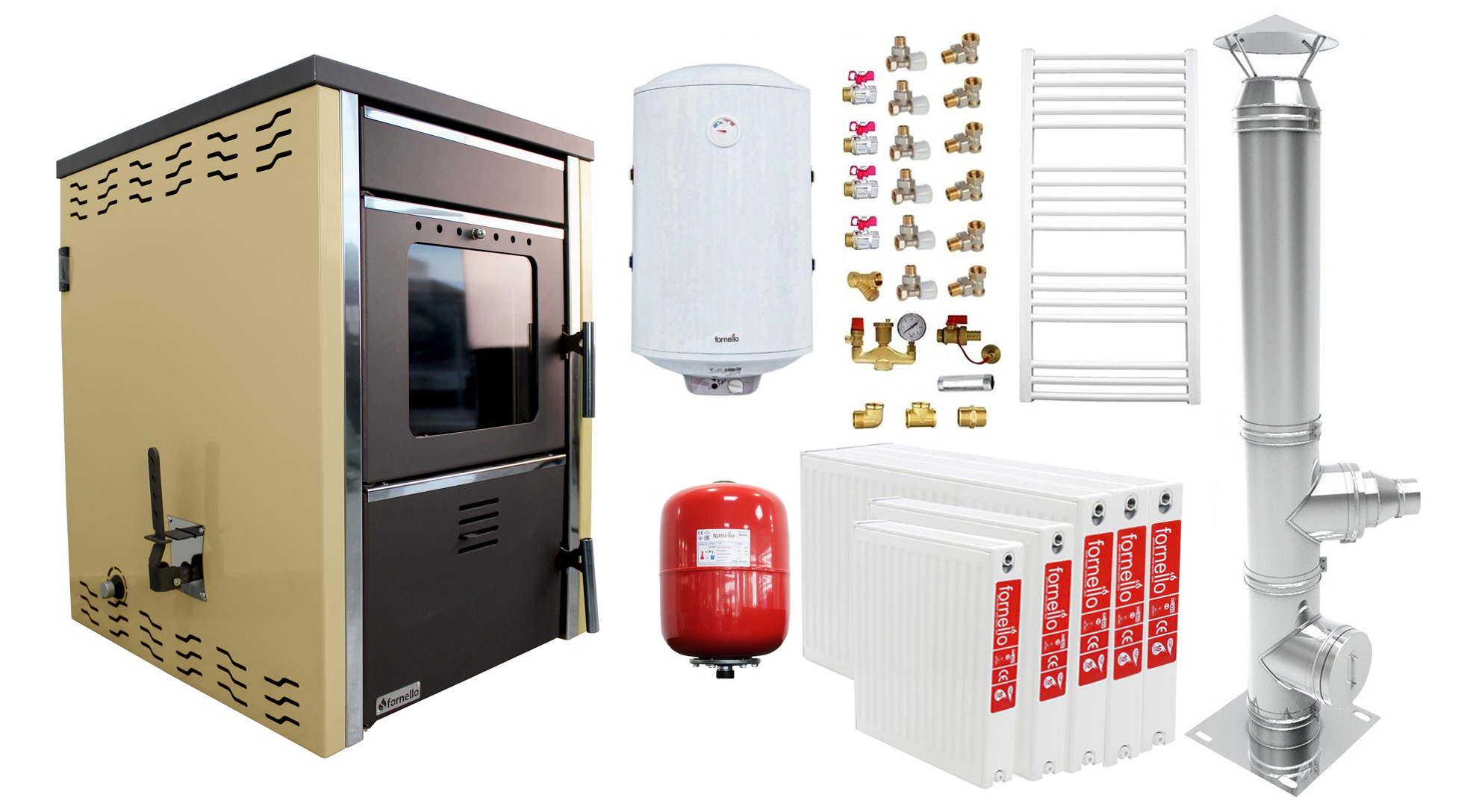 Pachet incalzire si apa calda 4 camere Termosemineu pe lemne FORNELLO TOROS 29 kw Ivory pe combustibil solid ( lemn,carbune,bricheti ), cos inox, boiler termoelectric 100l, vas expansiune, calorifere si kit montajPachetul contine urmatoarele produse:1. Termosemineu pe lemne FORNELLO TOROS 29 kw pe combustibil solid ( lemn,carbune,bricheti );2. Cos de fum diametru 200 mm dublu perete inox-inox, izolat cu vata bazaltica, 4 ml;Format din: flansa sol, teu racordare, teu curatare, 3 tronsoane de 1 metru, palarie antipoaie, 2 coliere fatada, racord dublu perete-simplu perete;3. Boiler termoelectric Fornello Titanium Plus 100 litri;Volum 100 litriTensiune electrica 230 VPutere electrica 2000 WEnergie electrica 9,1 AGreutate gol / umplut : 37 / 137 kgSupapa de siguranta – inclusa4. Vas expasiune vertical termic de 24 litri;5. Kit montaj (12 piese) pentru Fornello Termosemine lemne FORNELLO TOROS 29 kw pe combustibil solid ( lemn,carbune,bricheti ):Robinet trecere Fi-Fe 1” – 2 buc;Robinet trecere Fi-Fe 3/4” -2 buc;Filtru Y 1” – 1 buc;Grup siguranta 1” – 1 buc;Robinet golire ½” – 1 buc;Niplu alama ½” – 1 buc;Stut filetat zincat de 15 cm marime 1” – 1 buc;Teu alama 1” – 1 buc;Cot alama Fi-Fe 1” – 1 buc;Supapa unic sens alama ½” – 1 buc;6. Radiatoare si robineti radiatoare;Radiator otel Fornello 22x600x1600 – Sufragerie – 1 buc;Radiator otel Fornello 22x600x1400 – Dormitor 1 – 1 buc;Radiator otel Fornello 22x600x1200 – Dormitor 1 – 1 buc;Radiator otel Fornello 22x600x1000 – Dormitor 3 – 1 buc;Radiator din otel Fornello 22x600x800 – Bucatarie – 1 bucRadiator baie 500×1000 – 1 bucRobineti tur si retur radiatore – 6 setTermosemineu pe lemne FORNELLO TOROS 29 kw pe combustibil solid ( lemn,carbune,bricheti ) ce se poate utiliza atat pentru incalzirea locuintelor, cat si pentru gatit (este prevazuta cu plita) si este echipat cu pompa de circulatieFocar din tabla de otel de calitate superioara, care garanteaza o durata de folosire indelungata.Compacta si usor de instalat, dotata cu toate elementele de gestiune si control agent termic : pompa de circulatie, manometru, valva descarcare ,supapa de siguranta, afisaj electronic.Sistem usor de curatare a gratarului de fonta din exterior, care permite eliberarea acestuia de cenusa pentru a facilita continuarea arderii sau pregatirea pentru o noua alimentare fara a se deschide usa focarului! Carcasa din otel emailat rezistent la temperatura, care isi pastreaza aceeasi culoare si stralucire si dupa multi ani de folosirePlita este complet din fonta pentru o eficienta mai buna. Datorita formei inovatoare a schimbatorului de caldura si dimensiunilor compacte asigura un consum redus de combustibil. Culorui disponibile: IvoryTermosemineu cu design modern TOROS 29, din tabla de otel de calitate superioara.Gratar in camera de ardere din fonta.Termosemineu cu functionare pe combustibil solid ( lemn,carbune,bricheti ), producator FORNELLO , model TOROS 29Termosemineu este echipata cu pompa de circulatie agent termic, manometru,supapa de siguranta, aerisitor automat, acest produs se poate racorda direct la instalatia de incalzire. Puterea termica totala in functie de tipul de combustibilului folosit: Lemn – 20 kw ( putere data in apa 16 kw , iar in aer 4 kw )Bricheti – 21 kw ( putere data in apa 17 kw ,iar in aer 4 kw )Carbune 32 kw ( putere data in apa 26 kw,iar in aer 6 kw ) Suprafata incalzita 150 – 160 mp ( in cazul in care se utilizeaza lemn ) Suprafata incalzita 170 – 190 mp ( in cazul in care se utilizeaza combustibil mixt lemn +carbune ) Randament 80 % Presiune de lucru 2,5 bar Test presiune 4 bar Tiraj necesar cos fum 18 PA Temperatura gaze arse – 159 gr C Racord iesire tur/retur – 1 ” Temperatura maxima de lucru – 80 gr C Temperatura minima de lucru – 50 gr C Dimensiuni : Inaltime 892 mm Adancime 732 mm Latime – 639 mmVolum de apa – 39 L Diametru racord gaze arse – 130 mm Greutate – 180 kg Admisie aer primar – automat ( termostat capilar ) Admisie aer secundar – manual Displey electronic Sistem de curatare a gratarului de ardere.Caracteristici șeminee / termoșemineeAlimentare cu combustibil ManualăClasă energetică A+Temperatură maximă de lucru (°C ) 80 °CDispaly digital pentru comenzi si temperatura Maneta pentru curatarea de cenusa SCHITA INSTALARE :