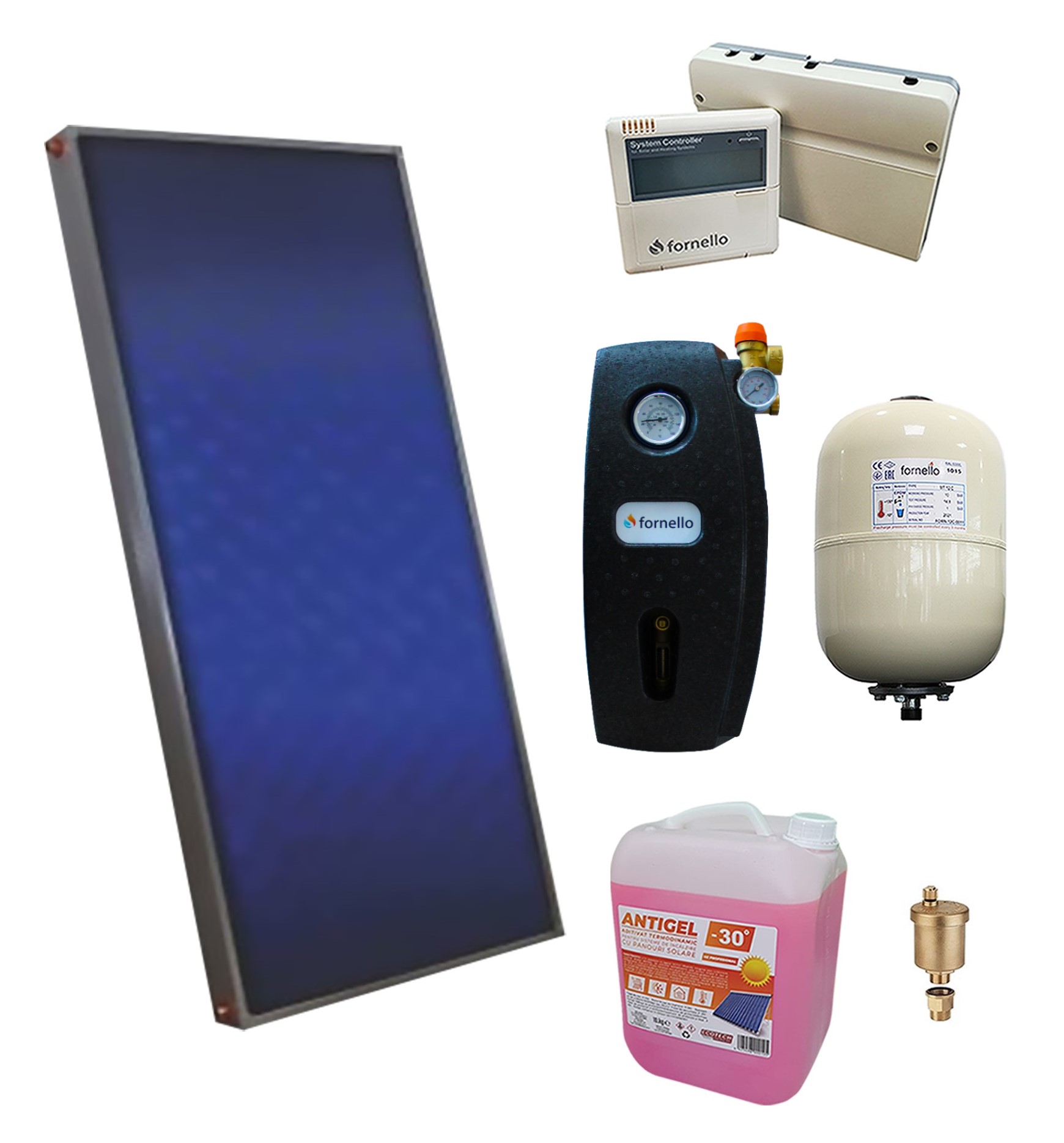 Pachet sistem solar presurizat, panou Sunsystem PК SL FP 2.0, controller, vas expansiune, grup pompare, aerisitor 1/2, antigelCaracteristici:-Panourile solare nu necesita montarea boilerului pe acoperis, boilerul poate fi pozitionat oriunde in locuinta, rezultand o pierdere minima de caldura pe timp racoros-Panoul solar cu boiler bivalent a fost optimizat pentru a furniza apa calda menajera tot timpul anului-O serpentina se monteaza la panoul solar, cea de a doua serpentina se monteaza fie pentru aport la incalzire, fie la o alta sursa aditionala pentru a incalzi apa menajera din boiler-Poate fi montat pe orice tip de acoperis si pe orice suprafata plana-Circuitul de schimb termic (intre panou si boiler) contine agent termic pe baza de antigel, astfel ca poate fi folosit si pe timp de iarna-Instalatiile de panouri solare plane de inaltă eficienţă sunt un mod ecologic și eficient de producere a apei calde menajere in sezonul cald al anului. Colectorul absoarbă eficient razele solare, care cade pe suprafaţa lui şi transmite energia către agentul termic.Sistemul solar include:1. Panou solar plan Sunsystem PК SL FP 2.02. Automatizare solara -Automatizarea solara are rolul de a comanda pompa solara din grupul de pompare-Dotata cu 3 senzori de temperatura (temperatura de la colectorul solar, temperatura din partea de sus a boilerului, respectiv din partea de jos a boilerului)-Microprocesor pentru monitorizarea si controlul colectorului solar, boilerului si pompei de recirculatie.-Display LCD care indica starea de functionare a instalatiei solare-Functii suplimentare: controlul diferentelor de temperatura; temperatura limita, maxima si minima a colectorului solar; temperatura anti-inghet; temperatura maxima de stocare apa calda menajera; racire; functie anti-legionella; functie by-pass; functie de recirculare; mod vacanta (racire);mod manual3. Vas de expansiune 24 litri4. Grup pompare Fornello5. Antigel solar preparat 10 kg-Antigel solar pentru instalatii solare propilen glicol aditivat-Temperatura de lucru: -28°C / 180°C6. Aerisitor automatATENTIE: Panoul Solar nu include suportul de prindere pe acoperis, acesta se poate achizitiona separat.Panouri solare plane SUNSYSTEM PK SELECT FPO linie noua de panouri solare colectoare SUNSYSTEM PK Select FP, cu absorbant din aluminiu si acoperire selectiva. Panourile solare plane de inaltă eficienţă sunt un mod ecologic și eficient de producere a apei calde menajere in sezonul cald al anului. Colectorul absoarbă eficient razele solare, care cade pe suprafaţa lui şi transmite energia către agentul termic.AVANTAJEAbsorbant in totalitateAcoperiș inclinat / Acoperiș platAbsorbant cu acoperire selectivaLegarea: teava de cupru ø22 fara filet si elemente de conexareSticlă solară de protecţieAVANTAJE: Absorbant in totalitate. Stratul selectiv de inaltă tehnologie a oferă o eficiență ridicată și durabilitate. Tehnologia de sudare cu ultrasunete oferă o sudare solidă, rezistentă la deformări mecanice şi termice. Harpă tubulară cu rezistență hidraulică scăzută. Testată pentru scurgeri. Cadru din aluminiu rezistent la condițiile meteo, cu posibilitate de montare in diferite poziţii. Sticlă solară de siguranță: Structură prismatică. Conținut scăzut de fier (FeO ≤0.02 %). Călită termic. Foarte rezistent la vant, zăpadă si grindină. Garnitură siliconică rezistentă la raze UV. Certificat: EN 12975:2006-06; CEN – 9949/2/2 DQS HELLAS.ELEMENTE:1 – Cadru de aluminiu2 – Garnitură siliconică3 – Sticlă solară de protecţie4 – Absorbant in totalitate cu acoperire selectiva5 – Izolaţie de inaltă eficienţă6 – Partea de jos a colectorului7 – Harpa din tevi de cupru8 – Conexiune Intrare / Ieşire9 – Legarea la 2 x PK Select FP – Adaptor pentru teava de cupru ø22Dimensiuni disponibile, M²: Modele verticale: 2.0 / 2.4SPECIFICATII TEHNICEDiagramăPierdere de presiune panouri solare PK Select FPa) – Pierdere de presiune (Ра)b) – Debit (kg/s)